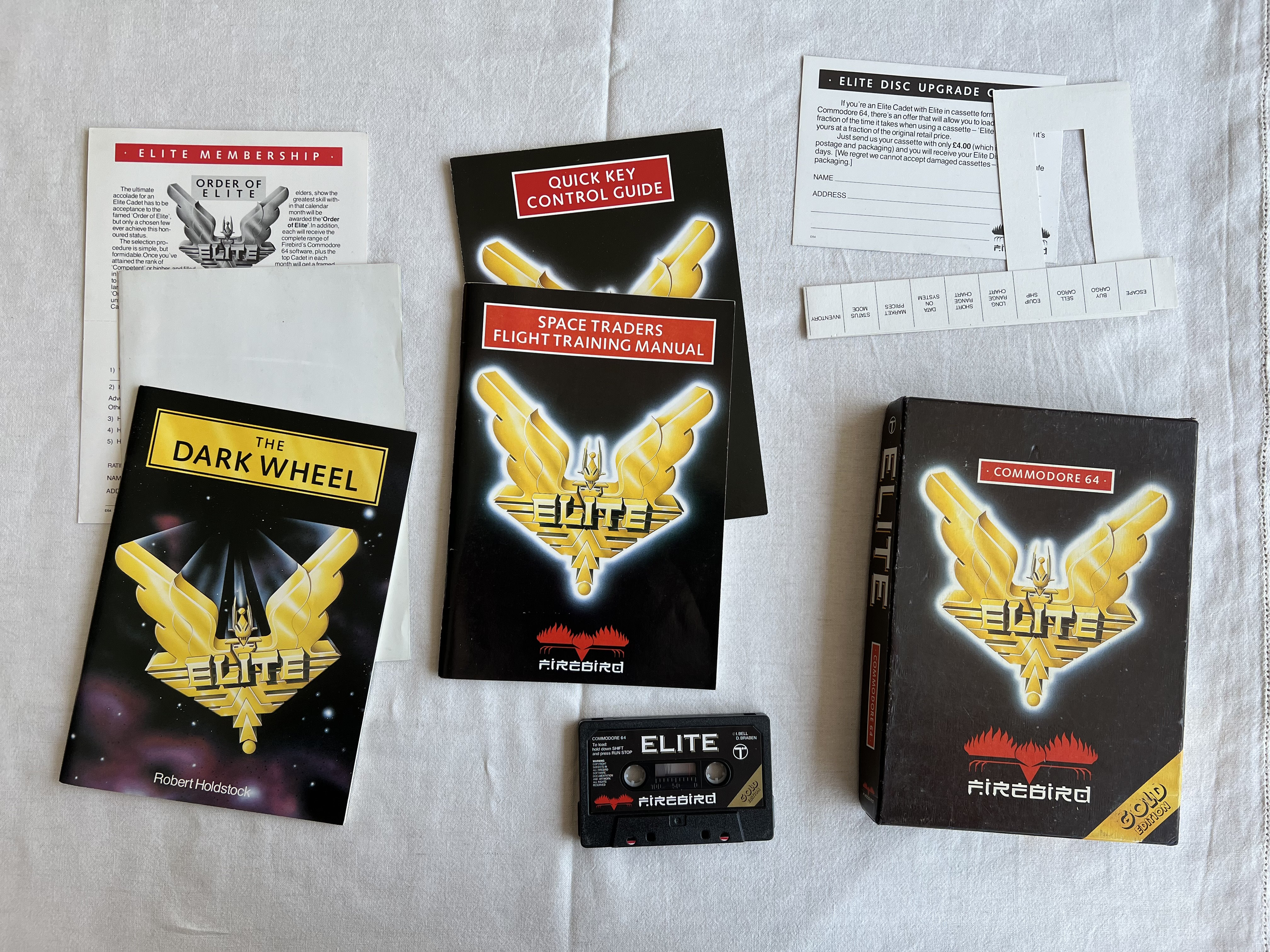 SIM | SIM | - Overlay para teclado - Oferta "Elite disc upgrade" - Guia rápido - The Dark Wheel - Registro - Pôster - Carta "This note can save your life, commander" |